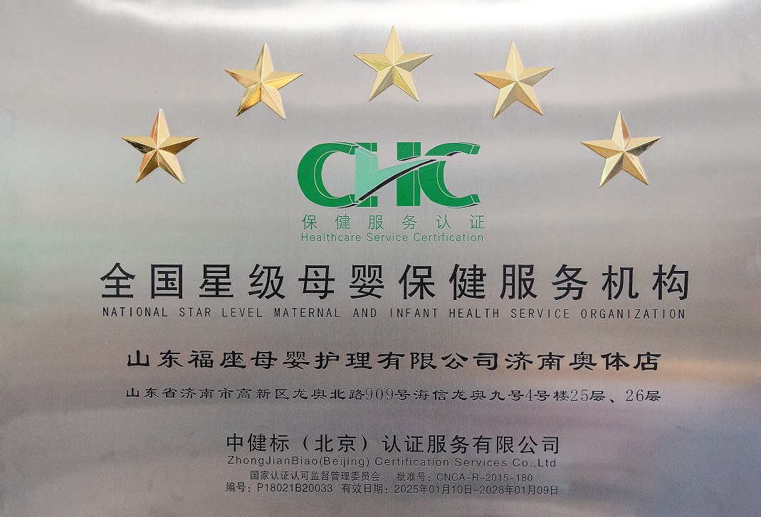 ·2018年,福座母婴被全国保健服务标准化技术委员会正式授予国内母婴服务行业最高标准称号--全国五星级母婴保健服务机构,成为济南市唯一获此殊荣的月子会所。